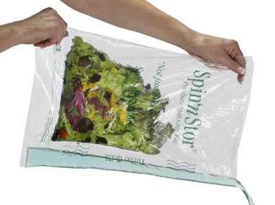 Spin 'n Stor, Reusable Salad Spinning Bags are the only patented reusable bag to spin produce & herbs dry. This reusable bag replaces the big, bulky, salad spinner. A Space Saver that fits in the drawer. No more wasted paper towels, no more searching for containers, as the reusable bag becomes your container. It is portable - you can store in the refrigerator or take salad to go, to work or picnics. No extra bowls or containers needed. Produce and herbs stay fresher longer. FREE SHIPPING on Spin 'n Store Bags |