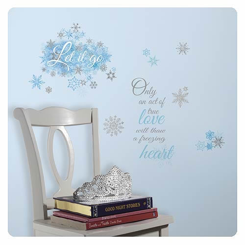 Bring the famous quotes of the hit Disney movie Frozen to the walls of your princess's room with these Frozen Let It Go Wall Decals! These icy wall decals will melt the heart of any little girl. Removable and repositionable, add the Frozen effect to a room in minutes! To apply, remove the wall decals from the backing and stick to the desired surface! FREE SHIPPING |